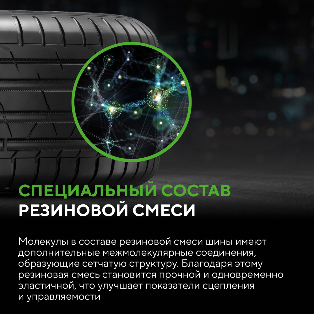 - Сетчатая структура резиновой смеси улучшает сцепление и устойчивость к повреждениям